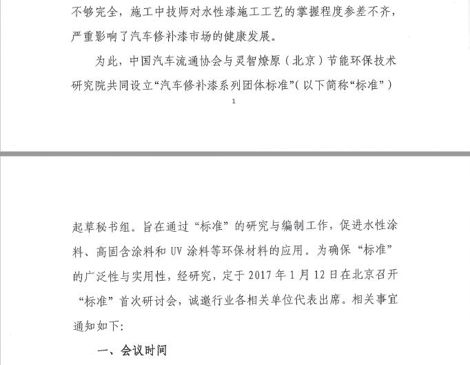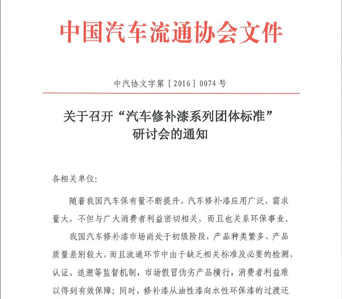 关于召开“汽车修补漆系列团体标准”研讨会的通知