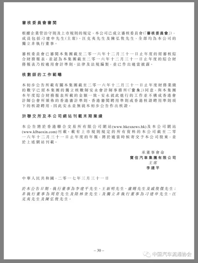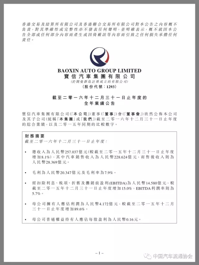 百强汽车经销商集团“宝信汽车”2016年度经营业绩公布