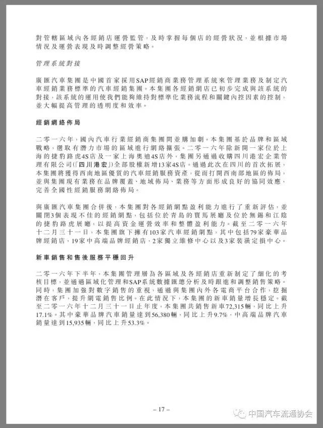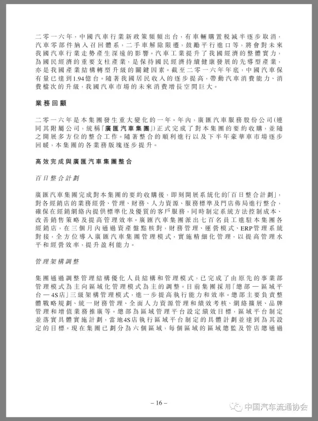 2016年,伴随着广汇汽车收购相关的整合工作顺利推进,以及下半年豪华车市场逐步回暖,宝信汽车的各个业务板块逐步提升。