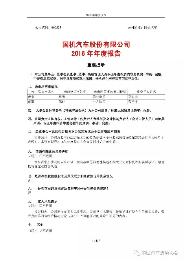 百强汽车经销商集团“国机汽车”2016年度经营业绩公布