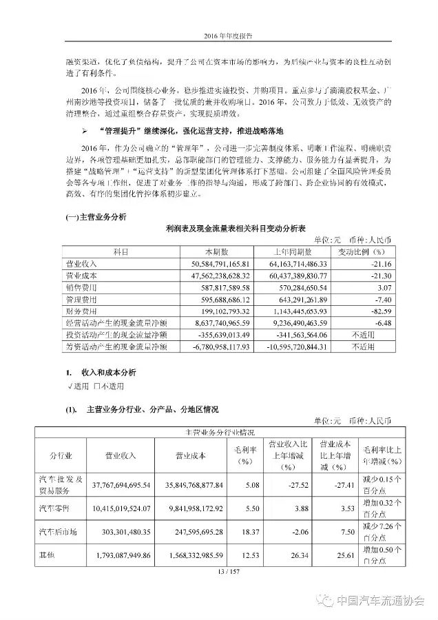 国机汽车报告期内实现销售收入505.85亿元,利润总额8.02亿元。虽然收入规模同比下降,但通过整合提升、内部协同、精细化管理等举措,实现了利润总额提升。