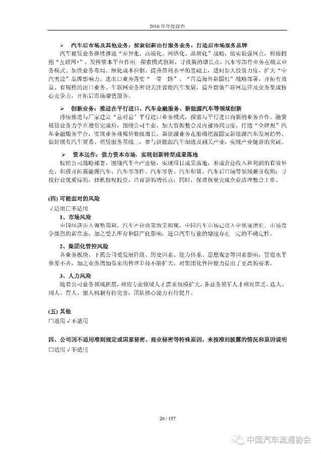 在汽车租赁业务领域,国机汽车继续坚持“差异化、高端化、网络化、品牌化”路线,重点拓展中高端集团客户和全国性网络布局,逐步构建常规租赁、个性租赁、融资租赁、衍生业务及新能源车租赁等五大板块。