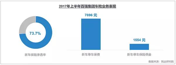 根据经销商百强集团2017年上半年的数据显示,4S店新车保险业务渗透率已达73.7%,单车保费及单车佣金分别达到7896元、1554元,汽车保险业务已经成为4S店新车销售及售后维修利润的重要来源。