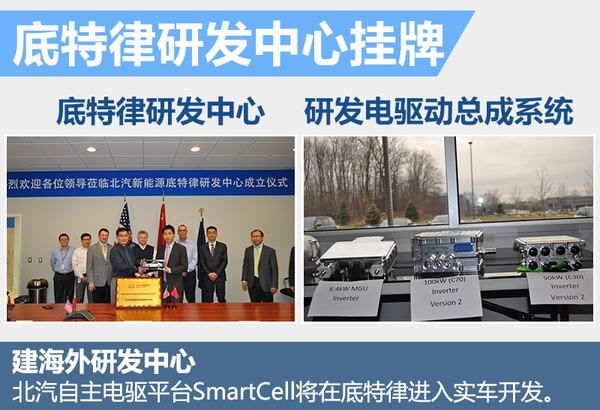 海外市场方面,北汽新能源国际化战略布局的第三站—美国底特律研发中心挂牌成立,该研发中心致力于电动汽车核心部件—电驱动总成系统的研发工作。底特律研发中心将与北汽新能源美国硅谷、德国亚琛研发中心协同合作,在电池、电机、整车开发及设计领域整合全球优质资源。